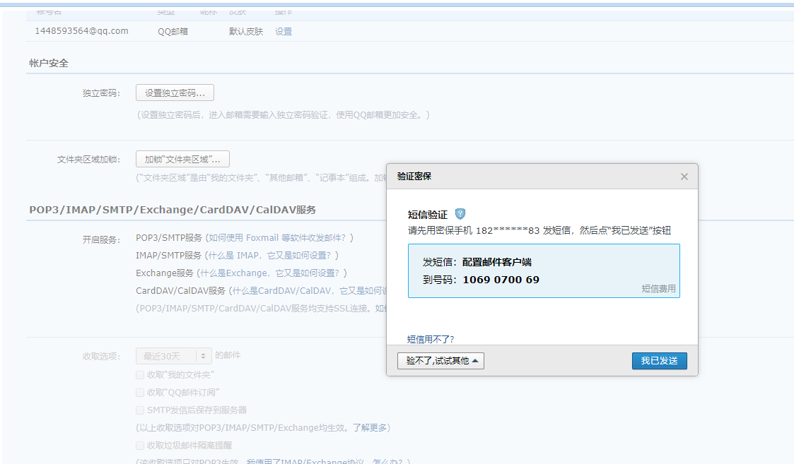 四、在彈出的驗證密保對話框中按相應的提示操作后,點擊“我已發送”按鈕