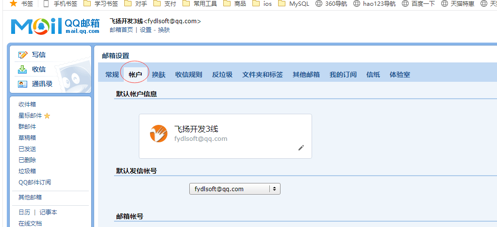 二、在郵箱設置界面點擊賬戶標簽